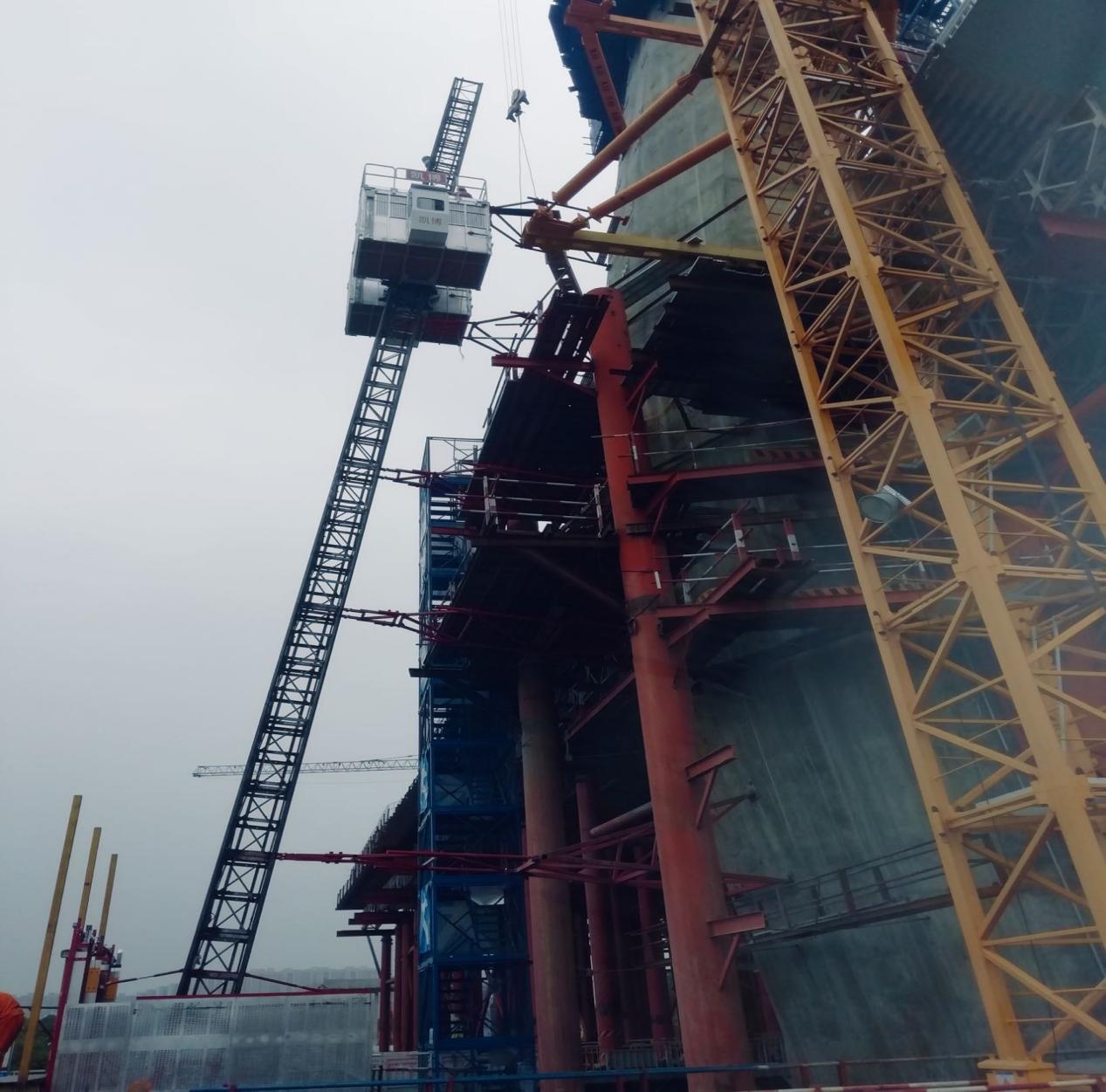 近日,廊坊凱博建設(shè)機(jī)械科技有限公司生產(chǎn)的斜、直線兩用施工升降機(jī)順利投入到廣東佛山“三水三橋”項目。此類型升降機(jī)承重架和吊籠經(jīng)過特殊設(shè)計,角度變化范圍為0~15°,在不增加任何部件的情況下,通過簡單操作即可實現(xiàn)斜、直線轉(zhuǎn)換。斜線運行時,吊籠始終保持水平,角度為0時,該機(jī)可做為普通直線升降機(jī)使用,吊籠尺寸和提升速度可根據(jù)用戶要求定制。該設(shè)備廣泛應(yīng)用于煙囪、橋梁等建筑工程。