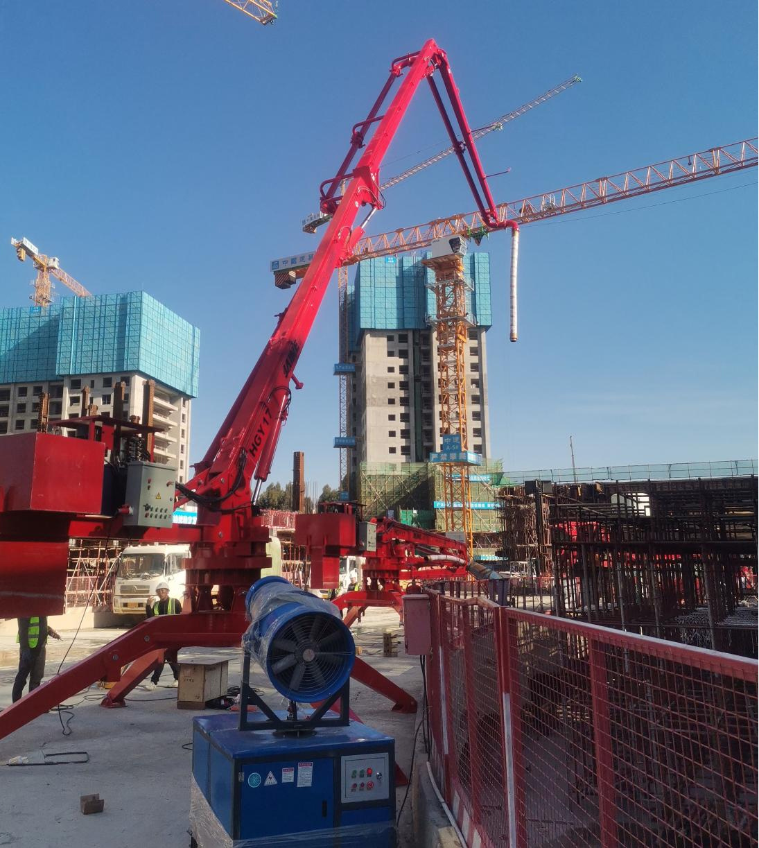 廊坊凱博建設(shè)機(jī)械科技有限公司研發(fā)的4臺(tái)HGY17移動(dòng)式液壓混凝土布料機(jī)(JAINE)在昆明市綜合交通國際樞紐建設(shè)項(xiàng)目中亮相。