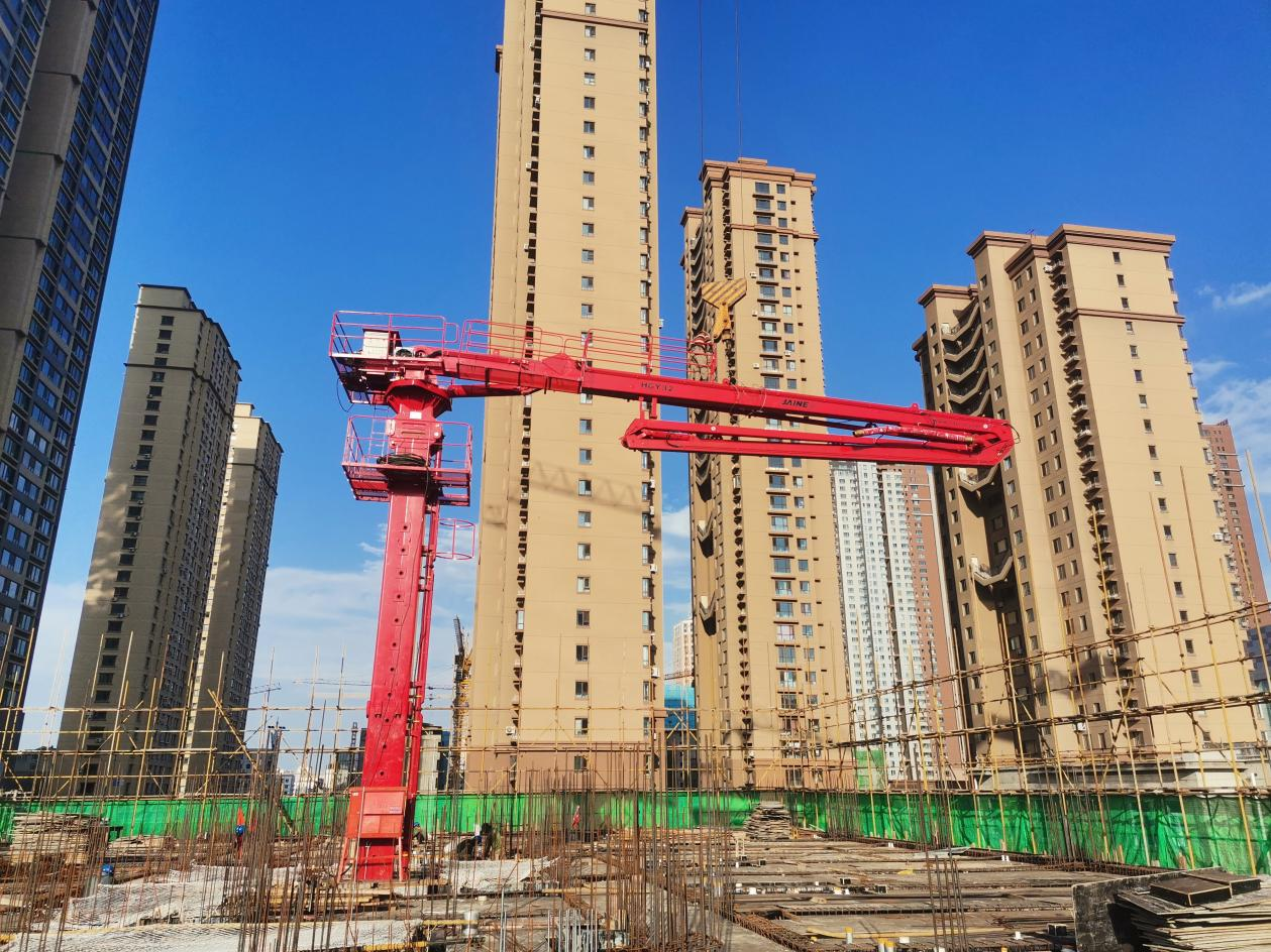 廊坊凱博建設機械科技有限公司生產(chǎn)的?JAINE建研?HGY32和HGY24電梯井爬升式布料機成功在沈陽旭輝鉑悅·公望項目中順利安裝并投入使用。